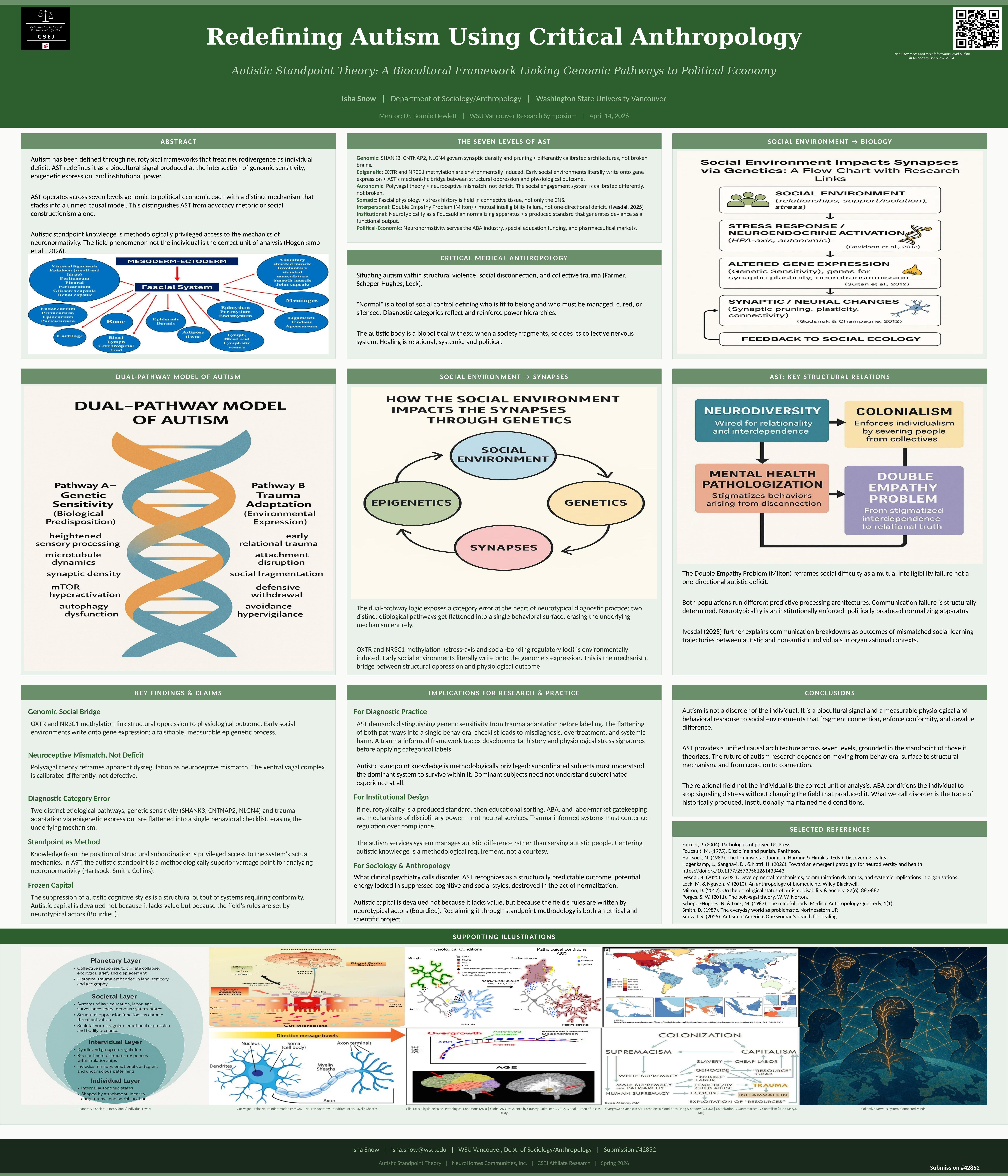 Autistic Standpoint Theory: A Biocultural Framework Linking Genomic Pathways to Political Economy